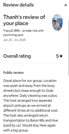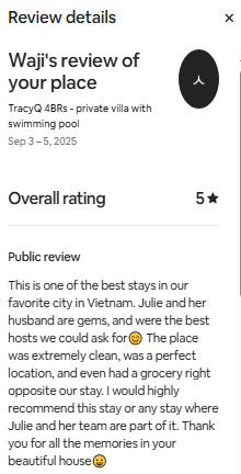 Cảm nhận của những khách hàng đã ở tại tracyq villa