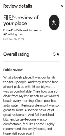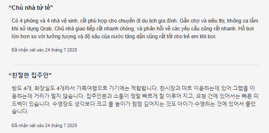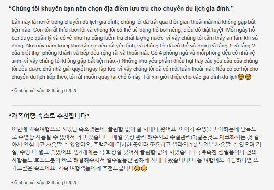 Cảm nhận của những khách hàng đã ở tại Bau villa