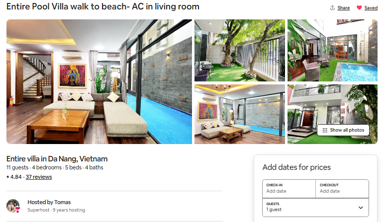 - Ngoài ra Villa có 2 nệm phụ nên cố lượng người ở tối đa 12 người