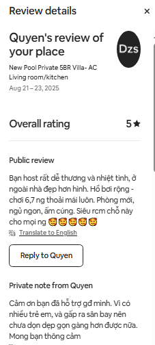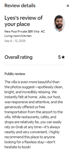 Cảm nhận của những khách hàng đã ở tại Lucia villa