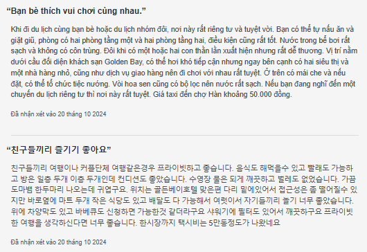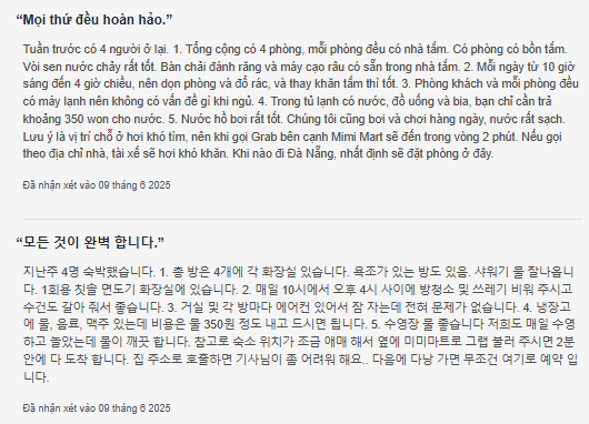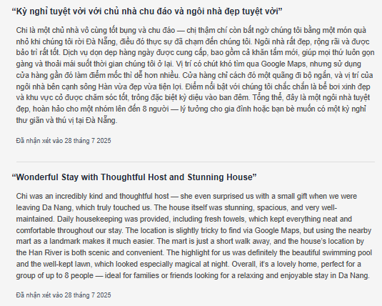 Cảm nhận của những khách hàng đã ở tại sanny villa