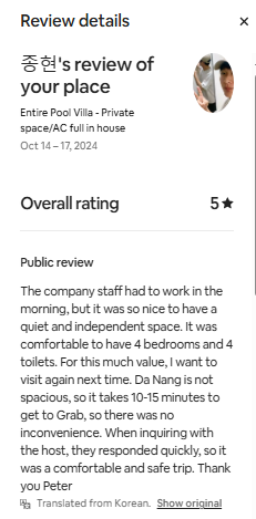 Và hơn 60 Review 5* khác trên Airbnb